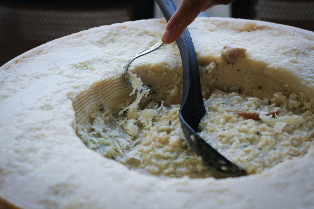 La Carne cotta su di un piatto rovente direttamente al tavolo questa nostra specialità vi permette di gustare i migliori tagli di care in un modo mai provato prima. Risotti di stagione mantecati di fronte a voi nella forma di Parmigiano Reggiano, per garantirvi qualità e un gusto eccellente. Potrete inoltre gustare un piatto tipico delle montagne venete, gli “Gnocchi alla Cadorina” di nostra produzione, con ripieno di ricotta affumicata e salata e semi di papavero. Sempre dalla trazione veneta, potrete scegliere dal nostro menù di primi i “Bigoli in Salsa”, con acciughe e cipolle stufate.